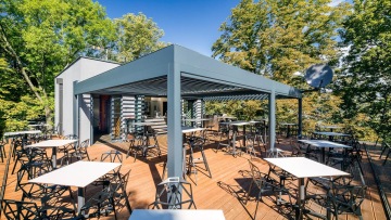 Hlavní část restaurace se nachází v prvním patře. O patro výš přivítá vaše hosty velmi zajímavě řešená, plně vybavená střešní terasa s barem. K dispozici je výtah.