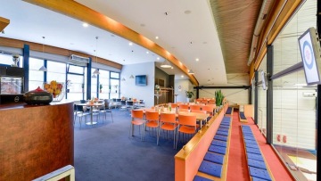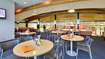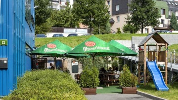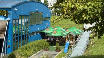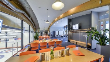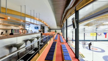 Nekuřácká klubovárestaurace, bezbariérový přístup, výhled na curlingové dráhy, letní zahrádka.