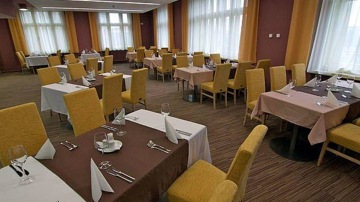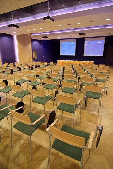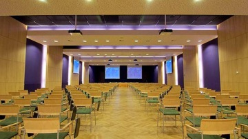 Konferenční sál je vybaven audio/video technikou, šesti plátny, wi-fi a dalšími náležitostmi pro komfortní využití, plně klimatizovaný.
