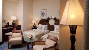 Vybavení pokojů: koupelna s bohatou nabídkou hotelové kosmetiky, telefon s přímou volbou, TV, sejf, minibar, vysokorychlostní internet.