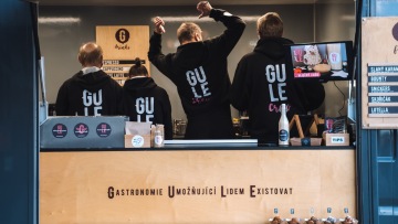 Již pátým rokem provozujeme vlastní pojízdné občerstvení (GULE FOOD TRUCK), ze kterého zákazníkům nabízíme čerstvě připravené tvarohové mini koblížky (gule), výběrovou kávu a různé sezónní nápoje. V provozu využíváme přednostně místních zdrojů, šetrně nakládáme se všemi surovinami a jednotlivé produkty servírujeme na bio kompostovatelném nádobí.
