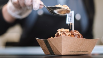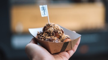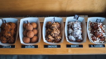 Hlavním produktem Food Truck GULE (Gastronomie Umožňující Lidem Existovat) jsou čerstvě připravené tvarohové mini koblížky s různými variantami polev a posypů.