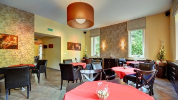Vybavení: velkoplošná TV s možností připojení PC, DVD /na vyžádání/, ozvučení ve všech částech restaurace