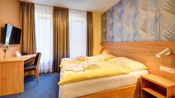 Vybavení pokojů: koupelna se sprchovým koutem, vysoušeč vlasů / LCD-TV, telefon, trezor, pracovní stůl, pohodlný kufrbox / Wi-Fi připojení zdarma / úložné prostory v chodbě / u pokojů superior minibar, balkón do hotelové zahrady