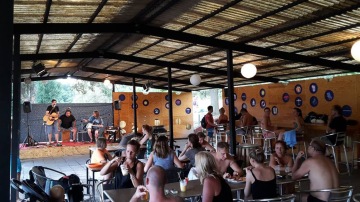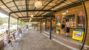 Součástí areálu je zastřešená terasa restaurace s malým pódiem ideálním pro živou hudbu nebo DJ. Na terase je k dispozici také gril a ohniště k opékání. Sezení a rautové stoly jsou samozřejmostí. V zadní části areálu stojí velké pódium pro větší akce a kapely.