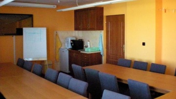 Místnost je vybavena kuchyňkou, počítačem připojeným na internet, projektorem, promítacím plátnem a velkou LCD obrazovkou.
