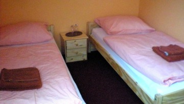 Vybavení pokojů: sociální zařízení s vanou, nebo sprchovým koutem, satelitní televize, WIFI internet.