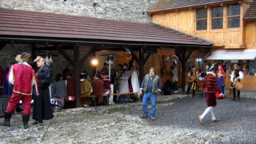 - společenský program s šermíři, hudebníky, tanečníky, kejklíři a občerstvením