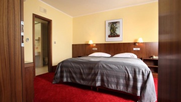 s vanou nebo se sprchou, rozměr pokoje min 22 m2, rozměr postelí 100 x 200 cm, WiFi na pokoji zdarma, možnost objednání manželské postele nebo kuřáckého pokoje.