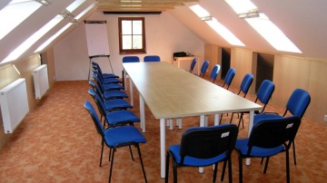 Součástí je projekční plátno s možností zapůjčení projektoru Epson a flipchart.