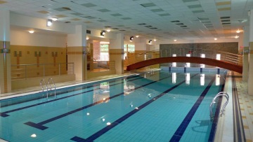 - krytý vyhřívaný 25metrový bazén s vodními atrakcemi, vířivkou a tobogánem