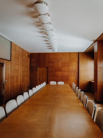 Dobová zasedací místnost s dřevěným obložením z 60. let nabízí sezení až pro 25 osob. Lze propojit se sousedním Butikovým kinem Přítomnost a Dobovou zasedací místností velkou.