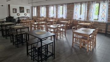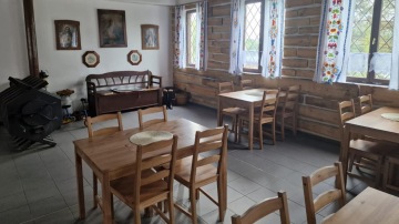 Restaurace v selském stylu s venkovní terasou a vlastní kuchyní.