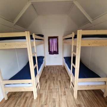 K dispozici je 50 4lůžkových chat. Sociální zařízení , sprchy a kuchyňka jsou volně k dispozici v blízkosti chat.