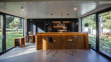 Stylově vybavený bar ve vstupní části areálu s kapacitou až 50 osob. Prostor je k pronájmu celoročně a lze ho využít pro semináře, workshopy, školení i teambuilding či oslavy. Součástí jsou stoly, židle a velká LCD TV.