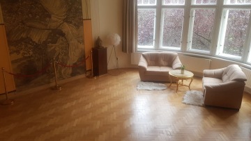 Šalounova vila nabízí díky svému nezaměnitelnému spiritu s podkresem historie neobyčejné prostory pro eventy: Oválná pracovna je velkorysý secesní prostor, Slovácká jizba skanzenem uprostřed Prahy.