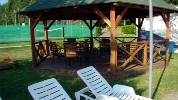 V letních měsících je možné využít terasu pro 50 osob, gril se zahrádkou a ohniště se srubem.