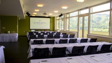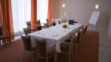 Vybavení: data projektor, LCD televizor, DVD přehrávač, základní ozvučení, osvětlení, překladatelské kabiny, simultánní překlad, plátno, flipchart, blok a psací potřeby.