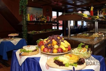 Loď Šumava nabízí kompletní gastronomický servis. Grilování a barmani na horní sluneční palubě.