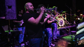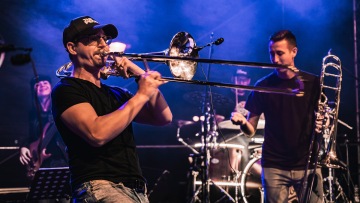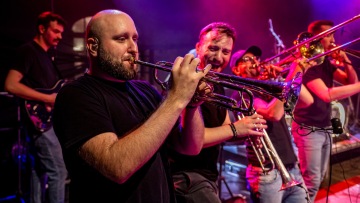 Je nás třináct! Zpěvačka, zpěvák, 2 trubky, 2 trombony, 3 saxofony, elektrická kytara, baskytara, klávesy a bicí.