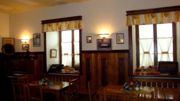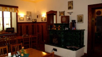 - stylová staročeská restaurace s kachlovými kamny, pianem, řadou rekvizit z doby působení J. Haška a letní terasa (55 + 40 osob)