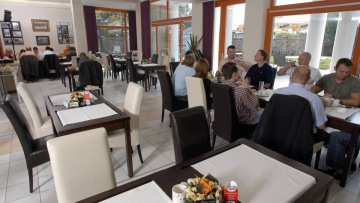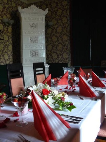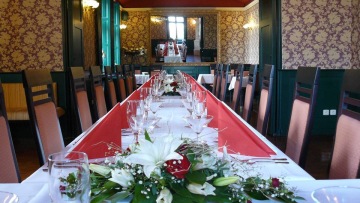 Pro náročnější akce je možno využít i hotelovou restauraci s kapacitou do 70 osob, která lze snadno spojit se zahradní restaurací, čímž toto prostředí získává na atraktivitě. Vyškolený personál pro Vás připraví občerstvení dle Vašich představ.
