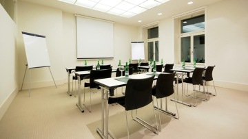 Technické vybavení: individuálně nastavitelná klimatizace, LCD projektory, vysokorychlostní Wi-Fi internetové připojení, dataprojektor s plátnem, flipchart, nástěnka