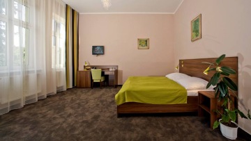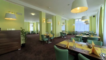 Reprezentativní hotel v lázeňské zahradě v blízkosti řeky i centra města nabízí stylový salonek a konferenční místnost, také moderní restauraci nebo zámecký Modrý salonek.